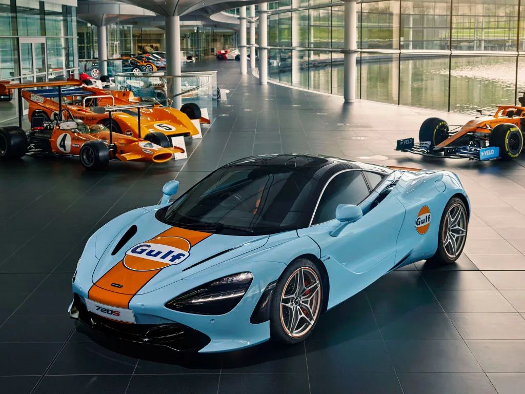 去年7月,迈凯伦F1车队就宣布和Gulf建立合作关系,后来发布了采用经典Gulf涂装的迈凯伦Elva、迈凯伦720S MSO Gulf Oil Livery。