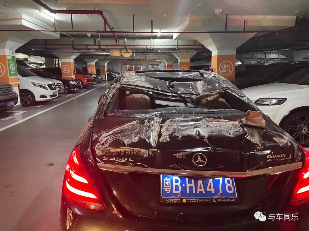 被救出来的S450,车顶和尾箱严重变形,大修肯定逃不过,并且修好,车价也会大幅度贬值。