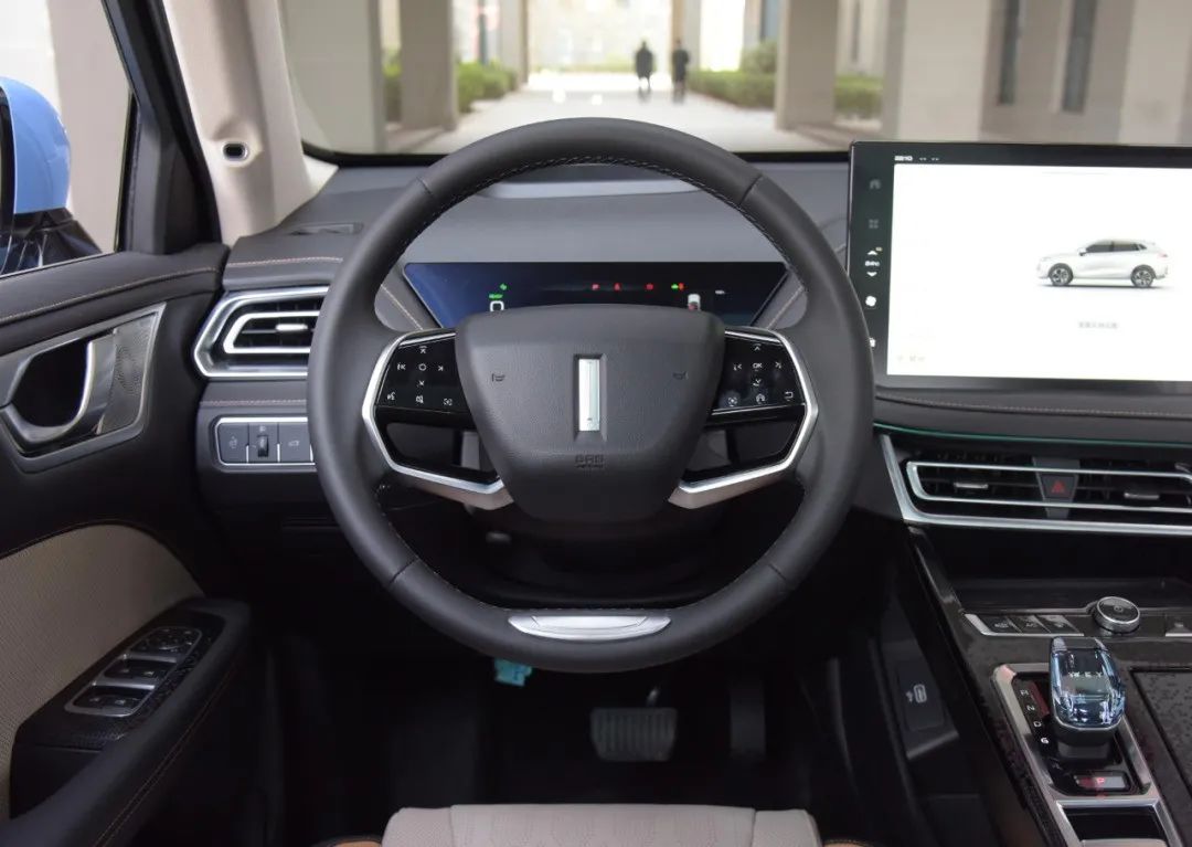 内饰方面跟摩卡也是大同小异,14.6英寸的巨大中控屏,下沉式的全液晶仪表,AR HUD抬头显示。不过在中控屏的下方,玛奇朵取消了摩卡上面的第三块屏幕,取而代之的是实体按键加储物空间。从实际体验上来看,摩卡的那个第三块屏幕体验并不是很好,正常的驾驶位看那块屏幕反光太严重,并没有实体按键来的方便。