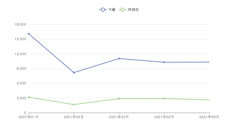 销量往往是购车的重要参考,根据众车网汽车行业数据监测显示,从2021年05月终端的销量来看,天籁的销量为10318辆,阿特兹的销量为2611辆,天籁要比阿特兹多售出7707辆。