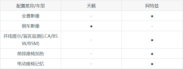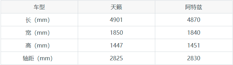 天籁和阿特兹配置对比