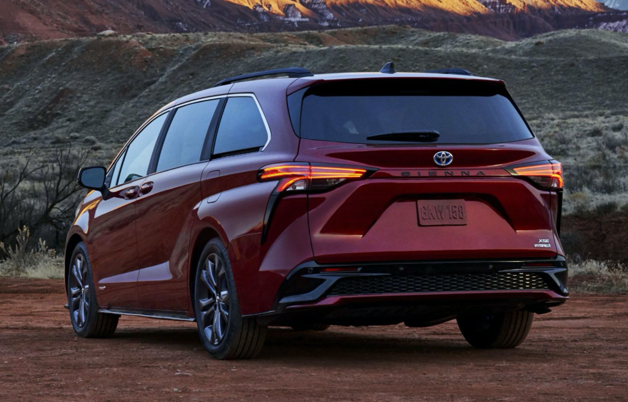 车身侧面两条不走寻常路的腰线勾勒出多块“肌肉”,让赛那看起来充满力量感和时尚感,尽管腰线的走位不那么正经,但总体的路径还是上扬路线,因此仍然给赛那带来了一些前冲的既视感。车尾部的线条似乎像一个“米”字一样,以丰田logo为中心向四面八方发散出去,熏黑并带有一点点泪眼感觉的尾灯非常运动傲娇。亮黑色的下保险杠装饰提升了整车的高级感。
