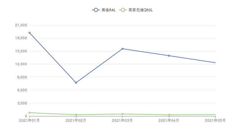 奥迪A4L和英菲尼迪Q50L全系销量对比
