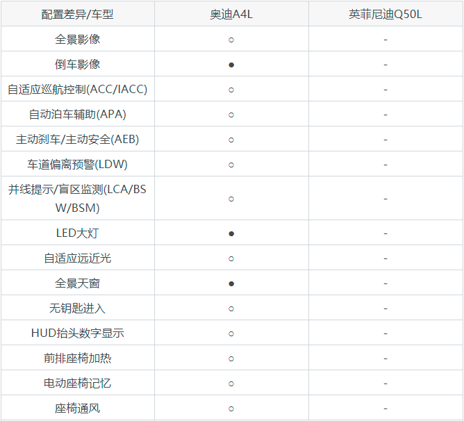 奥迪A4L和英菲尼迪Q50L配置对比