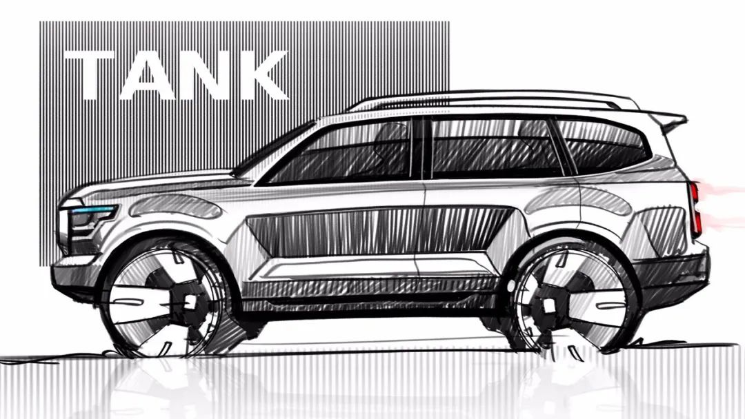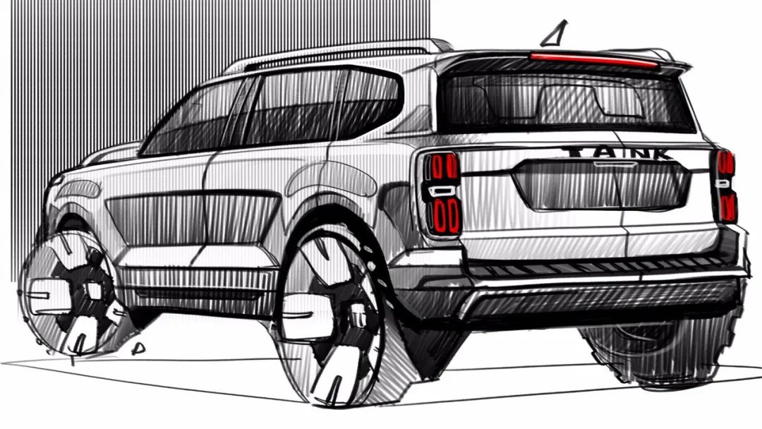 说实话,如果按照手绘图设计来打造,笔者认为这算是坦克家族里最帅的车型,平直的线条加上富有肌肉感的设计,这一看就是为男性朋友准备的硬派越野SUV,反观实车图确实差距太大了,甚至多少还有点道奇公羊皮卡的既视感,我们只能希望,这不是它最终落地的样子。