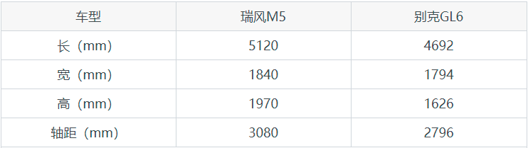 瑞风M5和别克GL6尺寸/空间对比