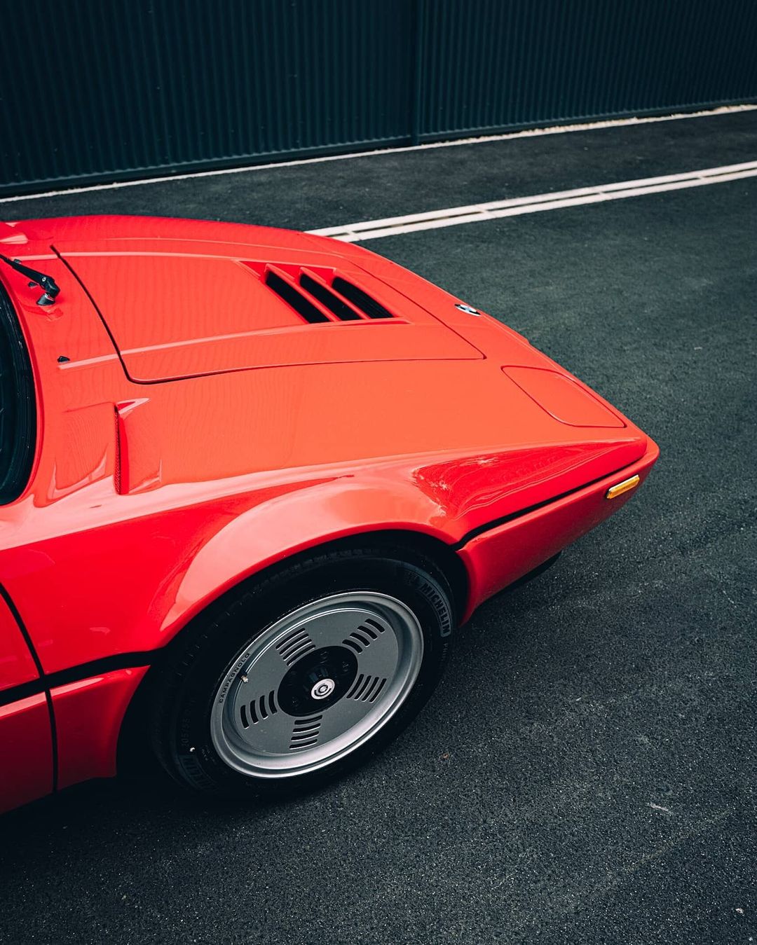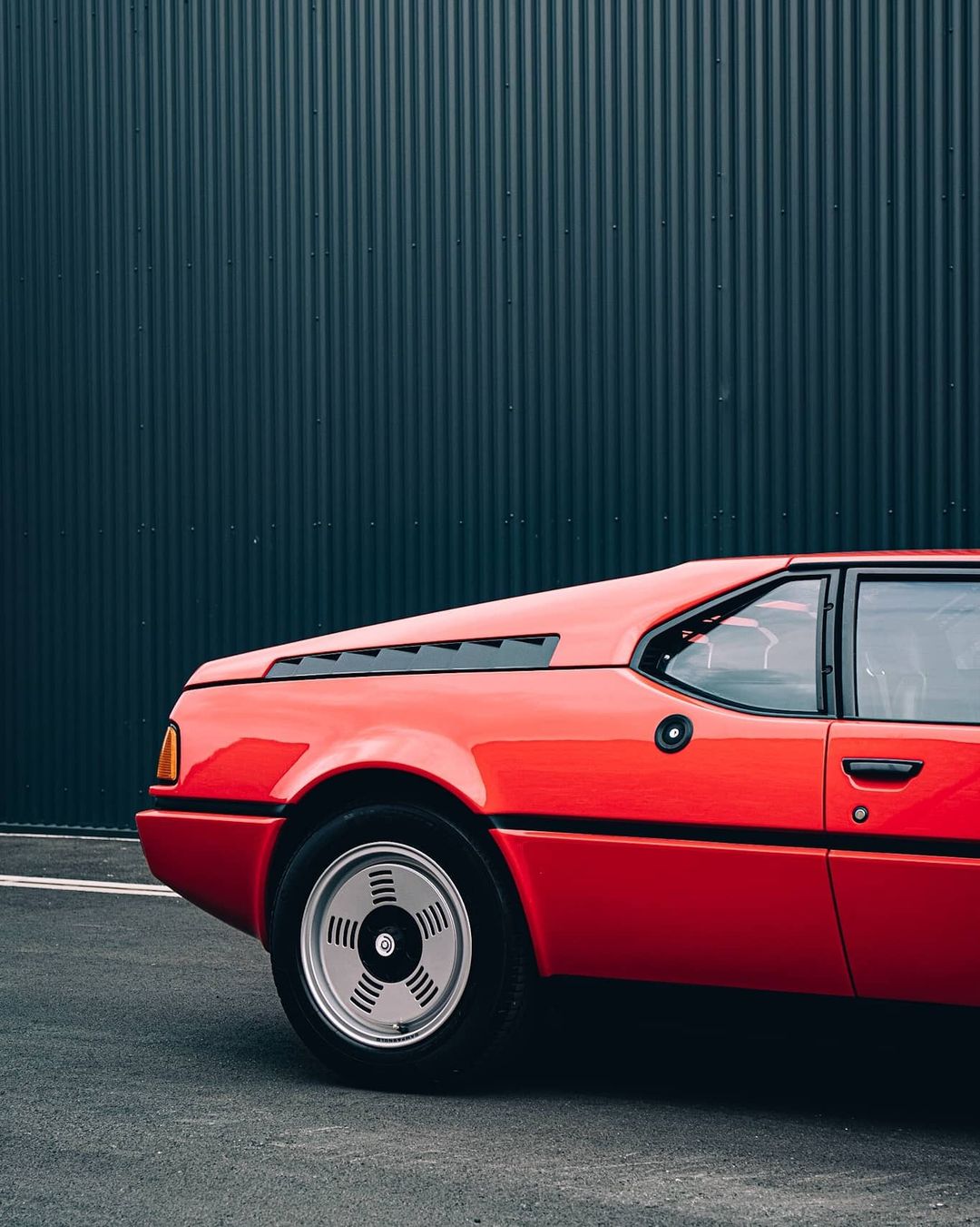 因为1970年前后的宝马并没有打造超跑的惊艳,所以宝马请来了当年法拉利的御用外观设计团队-Italdesign设计工作室打造M1的外观!Italdesign为宝马上的第一课便是贴地飞行,M1整车长4361mm、宽1832mm、高度仅为1140mm。M1当年所有宝马车的造型比例都有着天壤之别,为了降低风阻它的车头细长、水箱护罩虽然还是采取了双肾设计,但是面积狭小,头灯也采用了分体式隐藏跳灯布局。或许是为了不影响空气动力学设计,所以牌照也避开了“中置双肾”放置在保险杠侧下方。