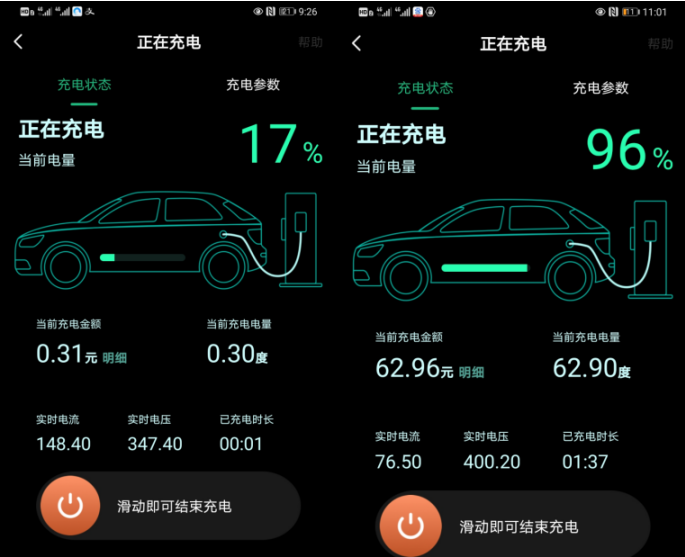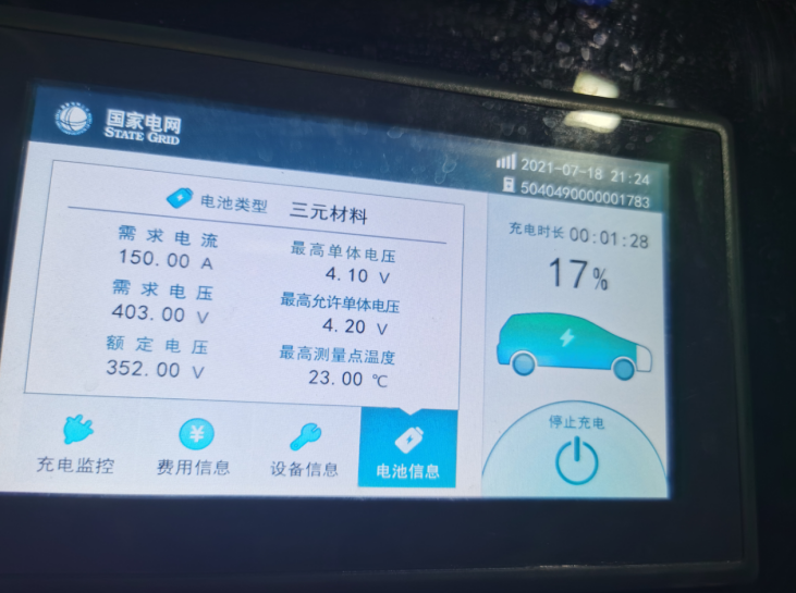 在续航测试后,车辆剩余电量小于20%时,开始充电测试。