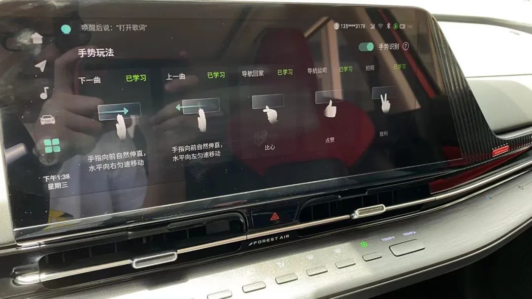 三是智能手势控制。手势的左右滑动,可以切换歌曲,再配合QQ音乐和先锋音箱等软硬件加持,体验感直线提升。通过比心手势,可让导航自动开启回家的路线,直接连说话的步骤都省了。当然,更多手势功能大家也可自己去尝试。值得一提的是,后排乘客一样可以通过手势动作,控制车辆功能。