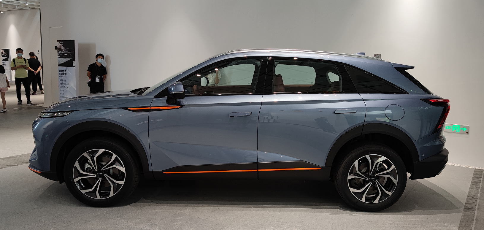 神兽侧身轮廓有着很强的雕塑质感,上扬的车身肩线和下压的车顶线条,加之D柱采用了近乎轿跑SUV的尾部设计元素,看上去动感十足。车门还装配以隐藏式门把手不但美观且可有效降低风阻,而花瓣式双色轮毂在表达力量感之余还流露出雅致的灵动气息。