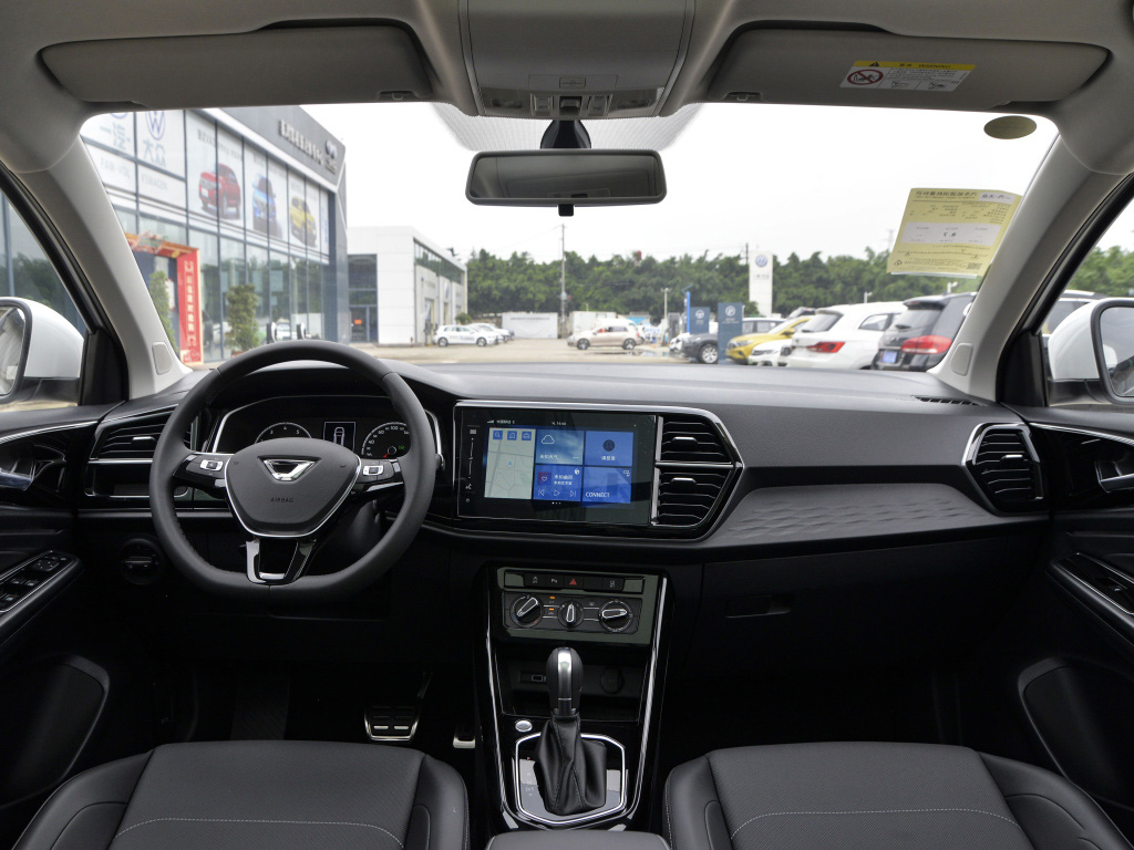 捷达VS7的内饰也是带有浓郁的大众风格,相信大众车主对这款车的方向盘造型、空调面板等细节都没有上手难度。捷达VS7的内饰也是不出意外的大面积硬塑料,不过材质就比较单调了,仅使用了黑色的钢琴烤漆和镀铬装饰进行装饰。VS7的仪表盘就是大众典型的指针仪表和单色屏幕的组合,中控屏幕达到了10英寸,支持捷达自家的互联系统。