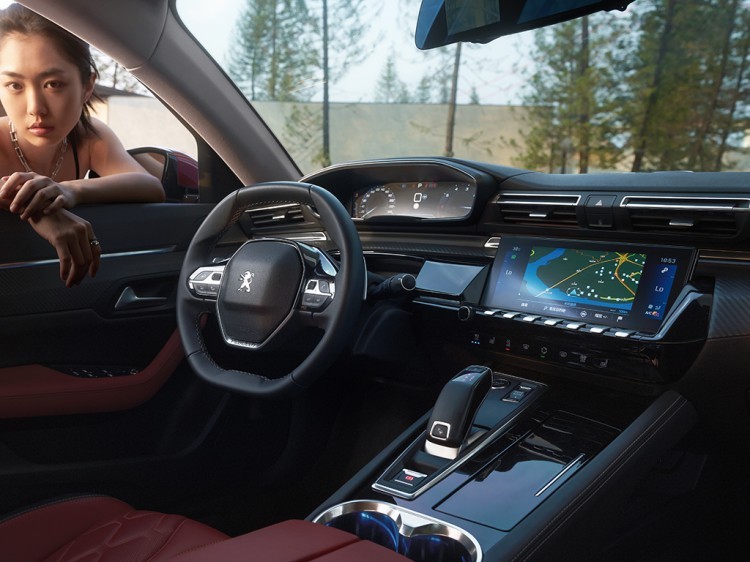 坐进车内,高端内饰氛围营造一直是法系车强项,新款508L使用的i-Cockpit座舱更是其中的代表作。整个中控布局精细,用料扎实,船舵式方向盘、竖向物理按键、电子挡杆等设计元素更是被同行广泛借鉴,堪称一代经典。