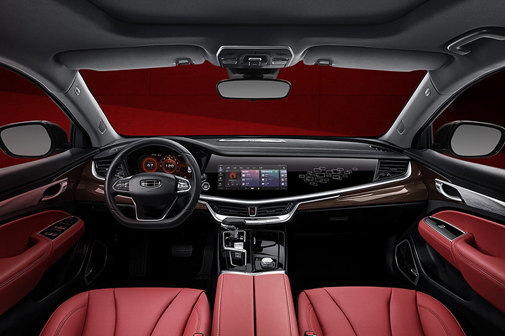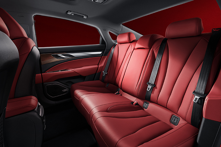 同样在内饰设计上,吉利博瑞国风版也与外观一样采用红黑双色的车厢配色,大气规整的中控台布局搭配红色皮质座椅、红色车门饰板以及红色中间扶手,透露出满满的国风气息。