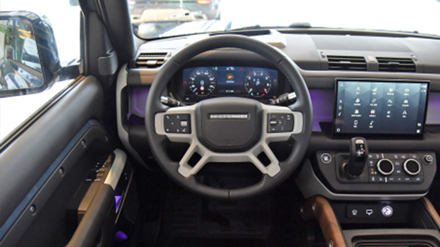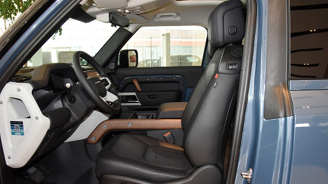 路虎卫士90内饰也没有改变,平直的线条和遍布四周的拉手,处处展现出硬派风格。虽然设计依旧比较粗犷,但和老款卫士相比还是营造出精致的感觉,比如中控上运用了大量的软质材料包裹和拼色设计。此外还有车载冰箱、10英寸中控屏幕、12.3英寸全液晶仪表、全景天窗、手机无线充电、Meridian英国之宝音响等配置,还算对得起70多万的售价。