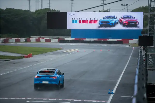 这是我第一次在赛道上试驾电动车,却碰上了下雨、湿滑路面,以及一辆488马力,860Nm输出的福特Mustang Mach-E GT。这个起点是不是太高了一点?