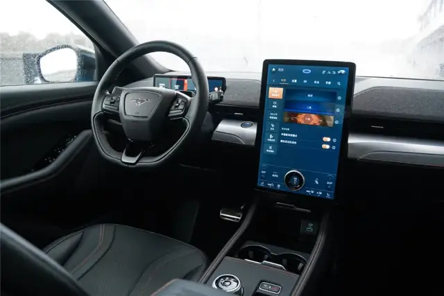 坐进车内,宽厚柔软的座椅,熟悉的按键布局,正是Mustang的味道。但偏高的坐姿、巨大的中控屏,使内饰少了些野性,多了些理性。